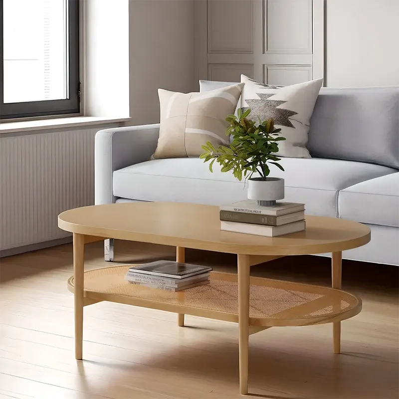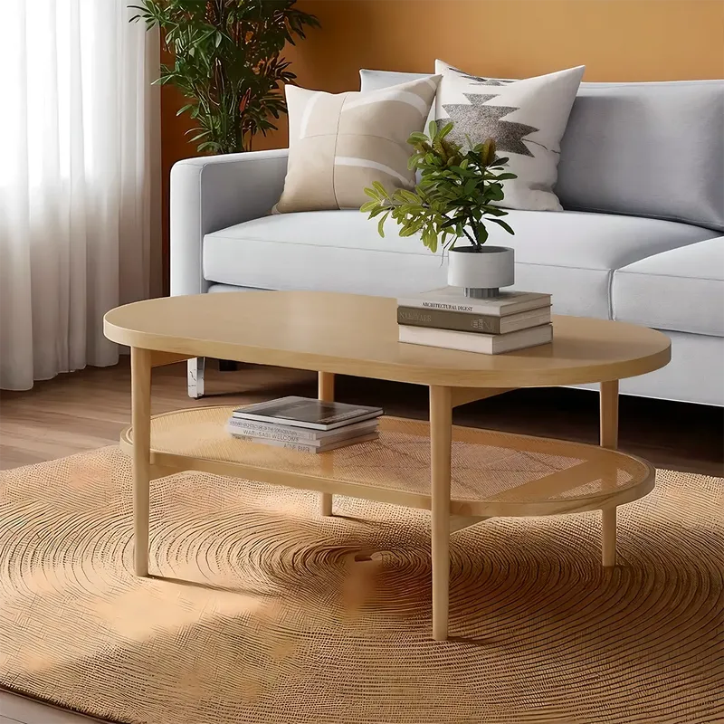 Natural Oak Oval Coffee Table Compact Space Saving Furniture